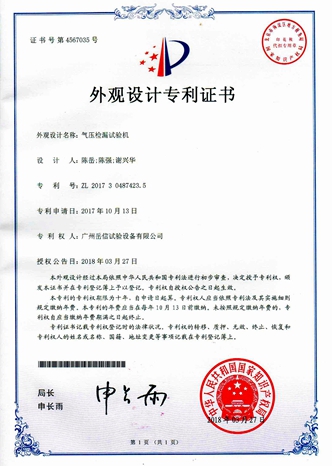 • 氣壓檢漏試驗(yàn)機(jī)-外觀專利證書【岳信公司】